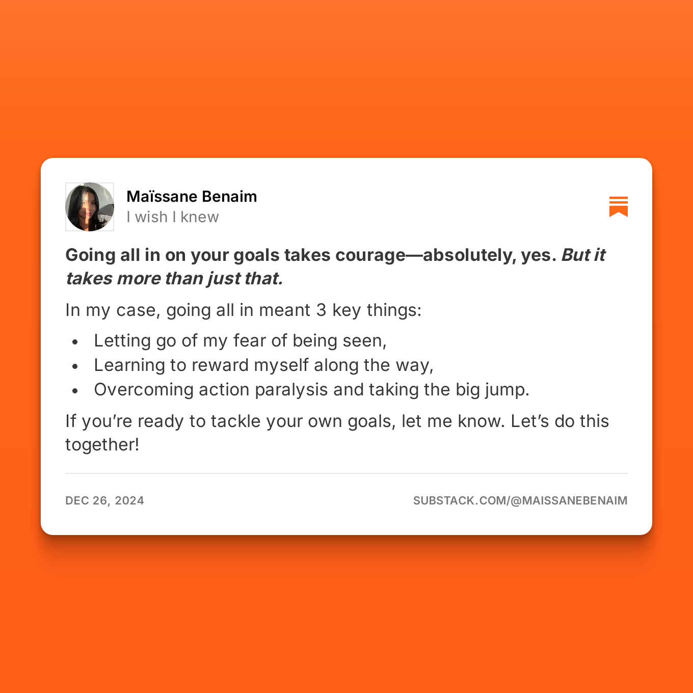 What is a the last time you took a risk and got into action mode? And if this whole experience was a book, what would the title be? Let me know in the comments or by replying to this message. I’m dying to know :)